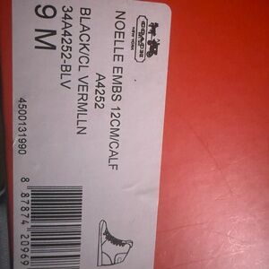 NEW IN BOX Coach Noelle hidden wedge ankle boots with red and black laces