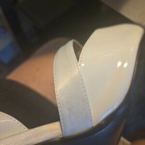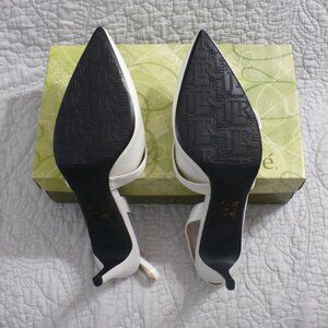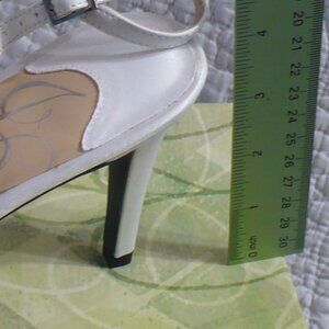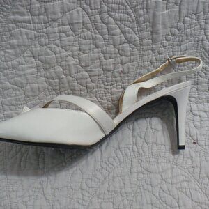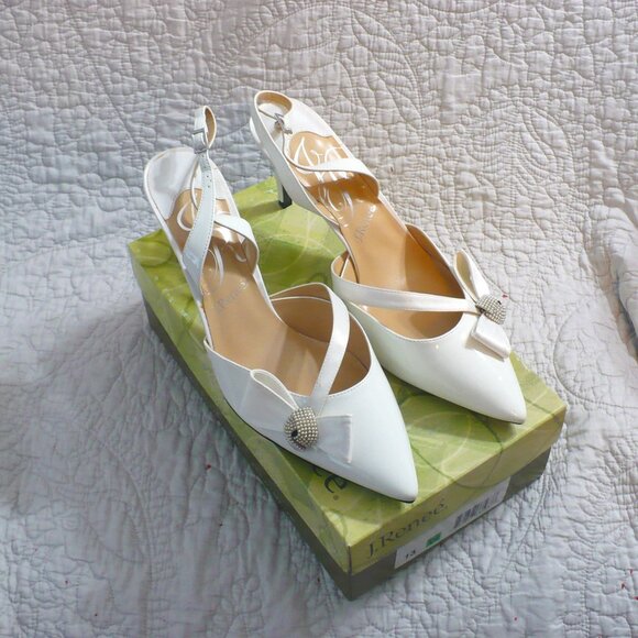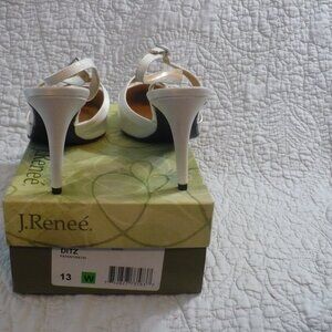 NEW IN BOX- J. Renee' White Pt 3" Heels w/ Satin Trim and Rhinestone Deco-Sz 13W- Absolutely gorgeous shoes!! There is a small discolored spot on the satin piece of one of the shoes. **SEE PIC**