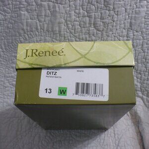 NEW IN BOX- J. Renee' White Pt 3" Heels w/ Satin Trim and Rhinestone Deco-Sz 13W