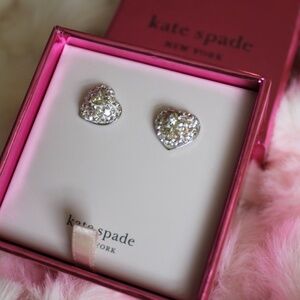 NEW IN BOX Kate Spade Something Sparkly Pave Heart Stud Earrings