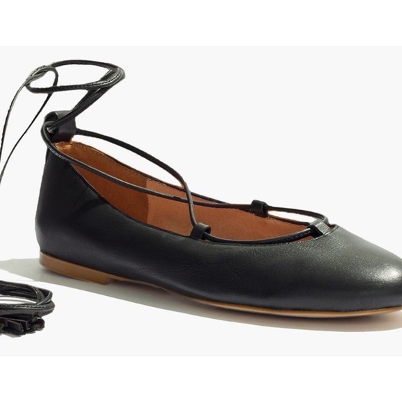 NEW IN BOX MADEWELL Black Leather Lace-Up Flats