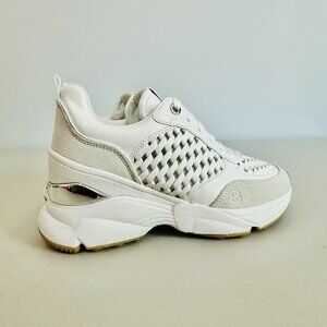 NEW IN BOX MICHAEL KORS KATRINA WEDGE TRAINER WOVEN OPTIC WHITE SNEAKERS
