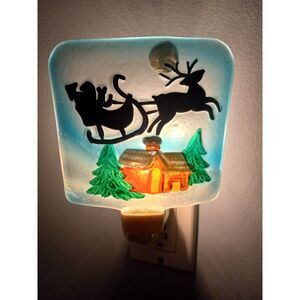 For sale is an Artisan Glass Christmas Reindeer Scene Night Light manufactured by Transpac. The bulb is INCLUDED.
