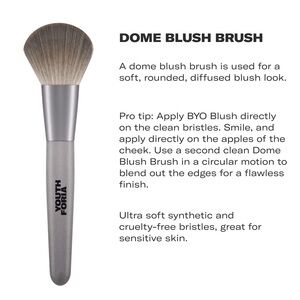 A dome blush brush is used for a soft, rounded, diffused blush look. Great for a natural blush look with a seamless transitions from your foundation.