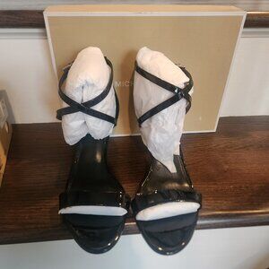 NEW IN BOX-Michael Kors Ava Mid Heel Sandal 100% Leather-Black Patent Leather-7M