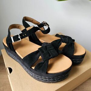NEW IN BOX UGG NEUSCH BLACK GENUINE LEATHER PLATFORM SANDALS SIZE 9.5