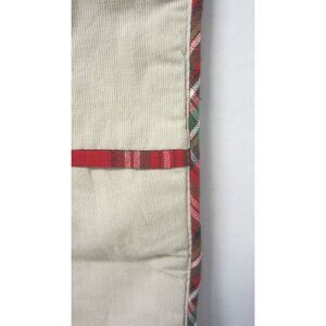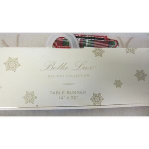 NEW IN PACKAGE ADORABLE BEADED EMBROIDERED SNOWMAN TABLE RUNNER BY BELLA LUX SIZE 14x72" SNOWMAN ON EACH END OF THE RUNNER AND THE CENTER IS PLAIN TO HIGHLIGHT YOUR TABLE CENTERPIECE. IT IS EDGED IN A RED AND GREEN PLAID CORDING. 100% COTTON, SPOT CLEAN ONLY.