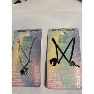 NEW IN PACKAGE TWO SETS Claire’s Bff Best Friends Silver Tone Heart Locket Neckl