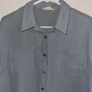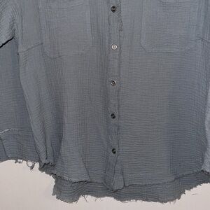 Upgrade your wardrobe with this stylish sage shirt. Perfect for any casual occasion, it offers comfort and a modern look. I love this material it’s like gauze. Front pockets
