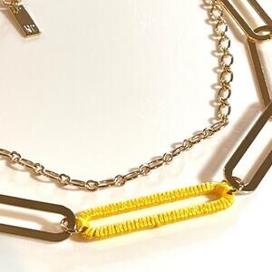 NEW INC 18" PAPERCLIP NECKLACE Gold Double Strand Link Yellow Wrapped Chain Link