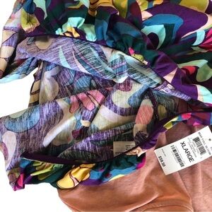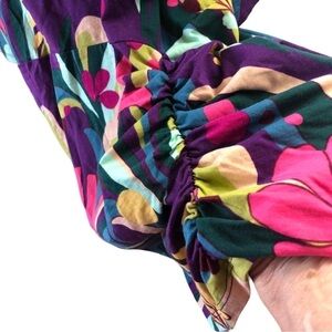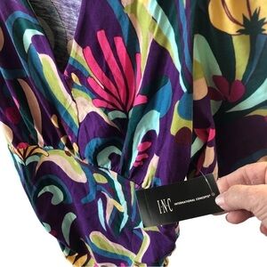 NEW INC Cotton Popover Top Women XL Multicolor Abstract Floral Short Sleeves