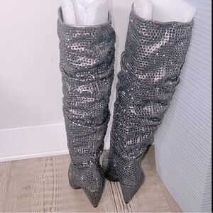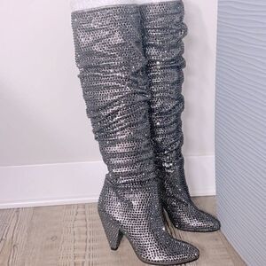NEW I.N.C Gerii grey Metallic Slouch Studded Boots Women shoes Pewter …