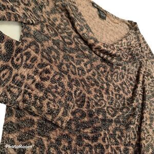 NEW/never worn — I-N-C International Concepts — long sleeve lightweight faux wrap knit pullover sweater top, leopard print, has metallic threading detail for a bit of sparkle, draped neckline... super pretty!!