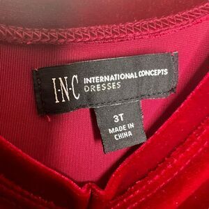 NEW INC International Concepts Girls Velvet Dress 3T Red Belted Long Sleeve