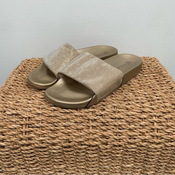 NEW INC International Concepts Gold Sparkle Slide Sandal XL 11/12