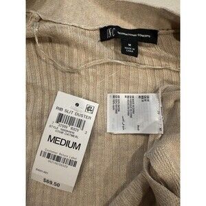 NEW INC Ribbed Duster Cardigan Womens Medium Open Front Sweater Oatmeal Pockets