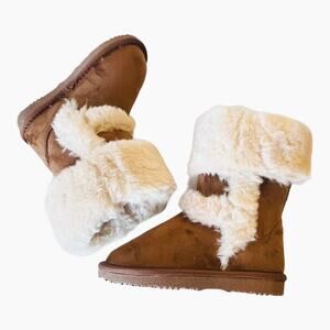 NEW INC Witty Faux Suede Fur BOOTS Little Girls 12 SHOES Chestnut Brown Cream