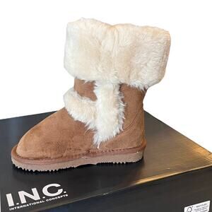 NEW INC Witty Faux Suede Fur BOOTS Little Girls 12 SHOES Chestnut Brown Cream - NEW Shoes - NEW In Box, Box Shows Wear!