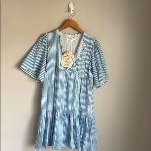 NEW INDIAN COLLECTION EMERSON FRY ISLA DRESS - SUNDAY STRIPE BLUESY ORGANIC XS/S