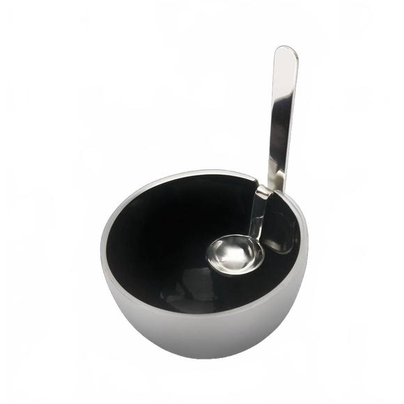 - Description: Introducing the Baby Benzy Bowl With Spoon by Inspired Generations, a stylish addition to your dinnerware collection. Handcrafted from food-safe polished aluminum, this contemporary chubby-round bowl features a unique tall "bent" spoon that fits neatly into the rim. Perfect for serving small nibbles, candies, nuts, and condiments. Size: 4.25" x 3". Color: Purple.