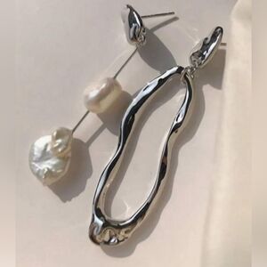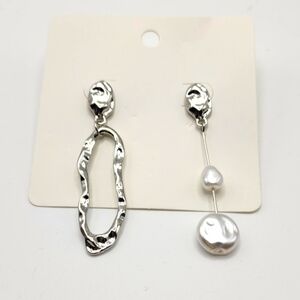 Elegant silver earrings featuring a unique design with pearl accents. Perfect for adding a touch of sophistication to any outfit.
