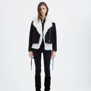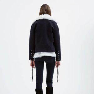 NEVER WORN, w/o tags. 2-PIECE coat: ✨BLACK jacket w/ BLACK lamb shearling✨ (photos of white shearling and navy coat combination only for clearer representation).