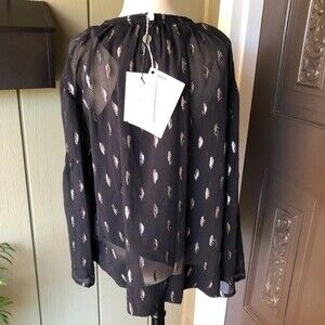 NEW! IRO Naomie Black Silk Flared Bell Sleeve Blouse With Metallic Thread Size S (36) $538 NWT
