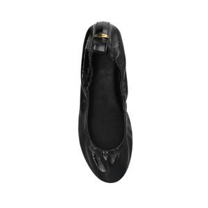 Glamour meets sophistication. Chic flat ballet shoes in glossy black patent. Crafted from 100% sheep leather. Embodying exceptional craftsmanship and style. Made in Portugal. Feature a round toe shape, offering both comfort and elegance. Perfect blend of modern flair and classic design.