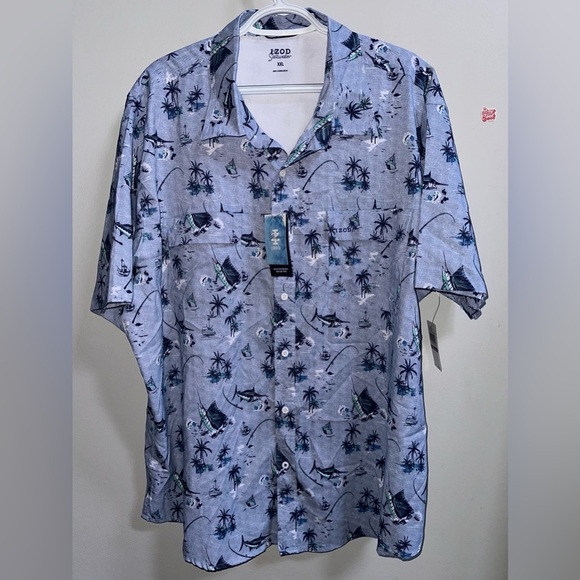 NEW IZOD Saltwater Classic-Fit Performance Beach Button-Down Shirt Men’s XXL