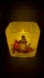 Approx 3.5” by 3.5 “ Small faux votive candle inside that runs on a 6 hr timer. Created in a smoke-free environment.