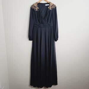 NEW Ieena For Mac Duggal Black Embellished Bead Shoulder Blouson Sleeve Gown