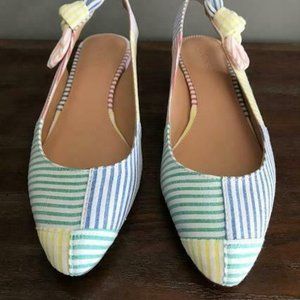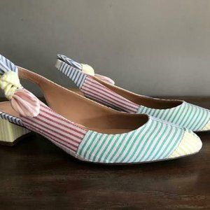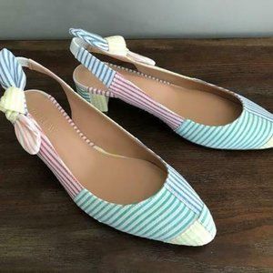 NIB JCrew $148 Slingback Bow Pumps (40Mm) Mixed Seersucker 6 Ivory Multi H8182