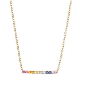 Gorgeous dainty necklace new in box! A rainbow of colorful stones line a bar pendant for a playful finish to your everyday style. Gold plated brass, cubic zirconia. Smoke free home and super fast shipping! ̈