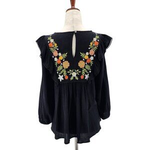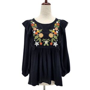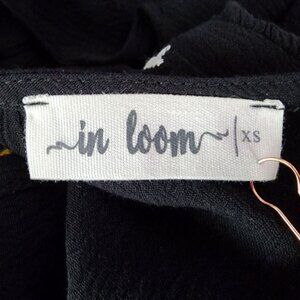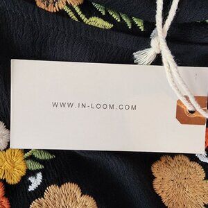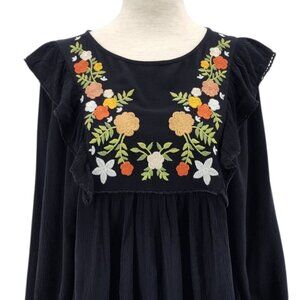 NEW In Loom Womens XS Top Embroidered Floral Tunic Peasant Black Multicolor Boho