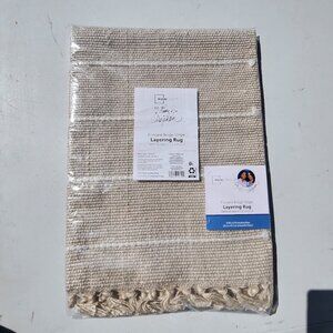 NEW Indoor Outdoor Rug Beige Cream Stripe 24" x 36" by Becky G. & Alejandra Indo