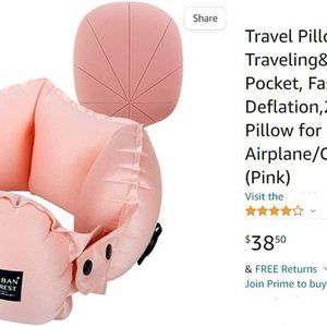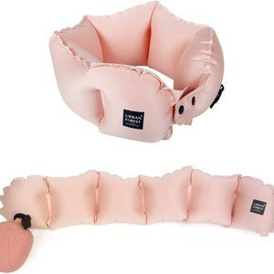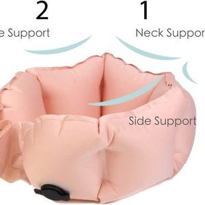 Neck Pillow for Traveling & Tree Storage Pocket, Fast Inflation & Quick Deflation,2-in-1 Design, Nap Pillow for Airplane/Car/Home/Office (Pink)