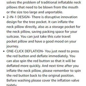 2-IN-1 DESIGN- There is disruptive innovation design for the tree pocket. It can inflate the neck pillow directly, also as a storage pocket for the neck pillow, saving packing space for your suitcase. You can just take this cute travel pocket pillow and have a good mood on your journey.