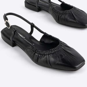 NEW Intentionally Blank Daff Black Leather Slingback Flats Sz 37 EU 6.5-7 US