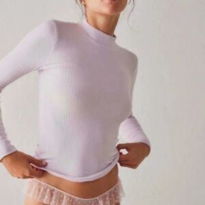 NEW Intimately Free People The Rickie Mock Neck Ribbed Top Size XS Pink Rose