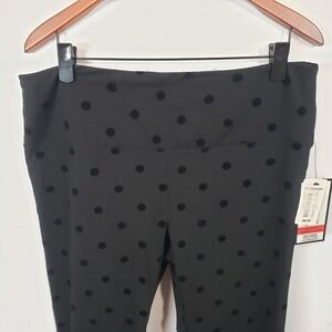 NEW ~ Intro Love The Fit Leggings Woman 1X Black Polka Dot Tummy Control / A8