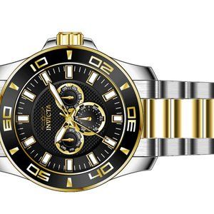 NEW Invicta Pro Diver 50MM Black Dial Quartz Two-Tone SS Bracelet Watch