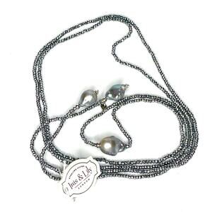 NEW Iris & Lily 925 Silver Faceted Bead ROPE NECKLACE 60" Freshwater Pearls NWT!