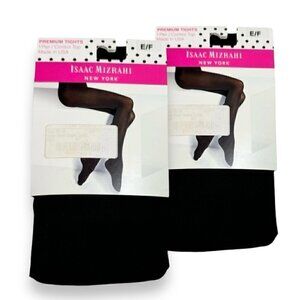 NEW Isaac Mizrahi Black Tights Sz. L 2PCs Opaque Stretch Control Top Fall Goth
