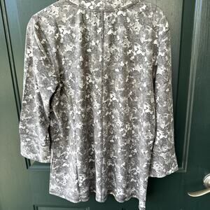 NEW Isaac Mizrahi Live! QVC Soho Printed 3/4 Sleeve Top Sz M Gray Floral Soft