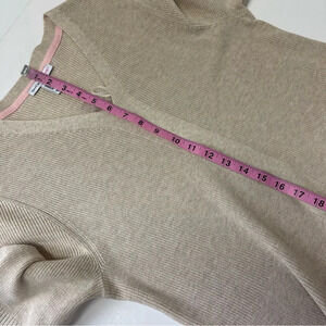Isaac Mizrahi Live Sweater Women Size Large Tan Short Sleeve Vneck Knit NWOT NEW