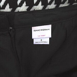 New Isaac Mizrahi for Target houndstooth skirt, size 6, black and white, lined, hidden back zipper with hook and bar closure, back slit to hem, textured weave in acrylic with poly lining, knee-length...