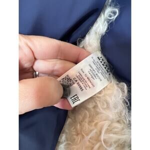 The garment is fabricated in 100% polyamide with a polyester faux-shearling trim.