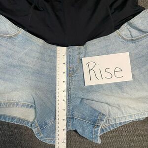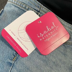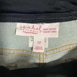 These are New with Tags Isabel Maternity Midi Shorts in a women's size 12. They have a 4" inseam and a 4 pocket design. They have a smoothing crossover panel and are pull on shorts. They are a light wash.