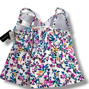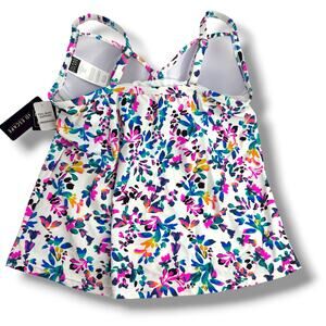 NEW Island Escape Tankini Swim Top SZ 6 White Purple Floral Boho Beach Swimsuit