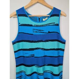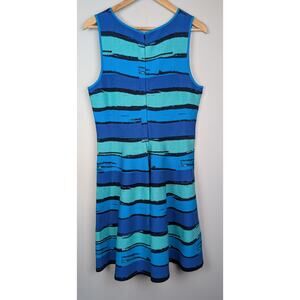 NEW Issa London Abstract Stripe Fit & Flare Dress Blue L
